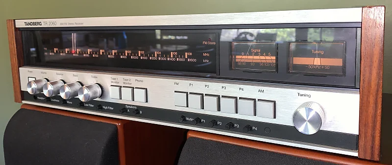 TANDBERG TR-2060 Classic Stereo Solid State Receiver ระดับ Hi-End รุ่นใหญ่ในตระกูล TR Series ที่ให้พลังเสียงได้สูงสุดถึง 90 วัตต์เต็มต่อข้าง สามารถต่อเชื่อมกับลำโพงได้ 2 คู่ พร้อมทั้งแหล่งสัญญาณเสียงหลัก ๆ ได้ทั้ง CD, Tape, Phono ตัวเครื่องมีขนาดใหญ่มาก และหนักพอสมควร กว้าง 52 สูง 15 ลึก 39 ซม.น้ำหนักประมาณ 13 กก.