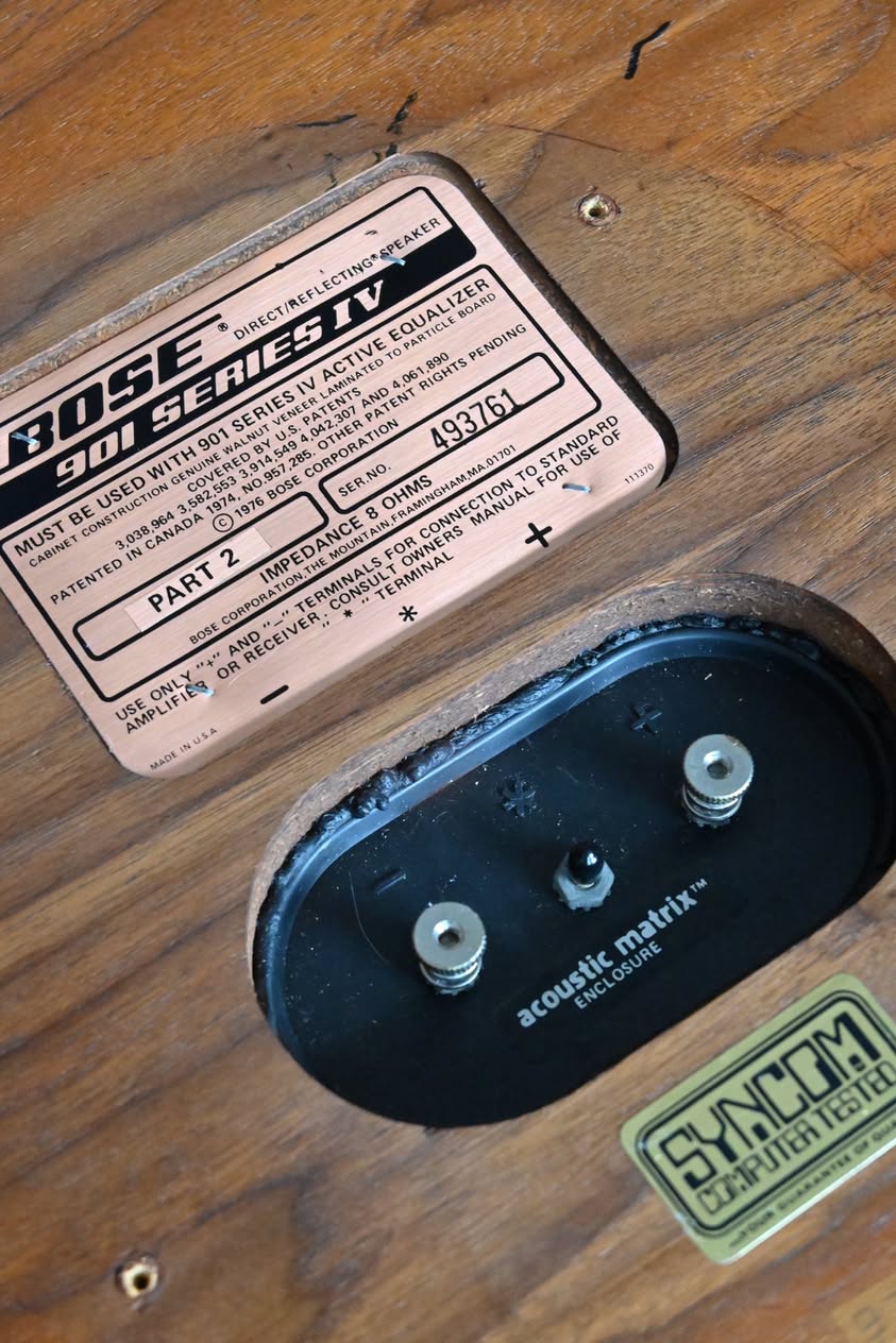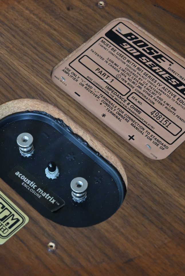 Bose 901 Series IV ผลิตในช่วง 1978 – ประมาณ 1983 รุ่นนี้ถูกออกแบบให้เข้ากับเฟอร์นิเจอร์ยุค mid-century พร้อมกับขาตั้ง Tulip ตรงยุค