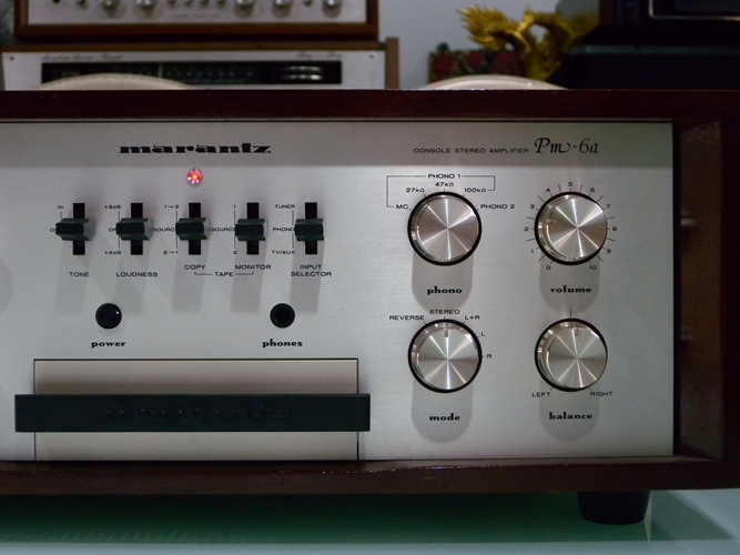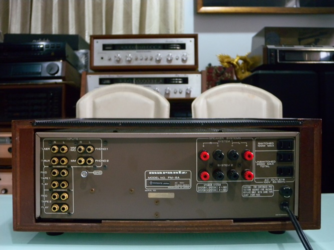 MARANTZ PM-6A ผลงาน Designed in USA และ Made in Japan เพื่อวางจำหน่ายเฉพาะในญี่ปุ่นเท่านั้น จึงใช้ไฟ 100V ด้วยคุณภาพที่เหนือกว่ารุ่นที่ส่งไปขายในเอเซีย รวมทั้งบ้านเรา ที่หาไม่ได้อีกแล้วในปัจจุบัน ตัวเครื่อง และกล่องไม้ธรรมชาติ ยังอยู่ในสภาพที่สวยสมบูรณ์ที่สุดเท่าที่เคยผ่านตามา ปุ่มควบคุมการทำงานทั้งหมดยังใช้ได้เป็นปกติ