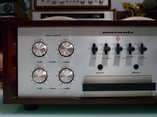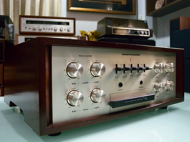 1. MARANTZ PM-6A Class A Integrated Amplifier รุ่นใหญ่ ที่หาได้ยากยิ่ง และนักฟังเพลงทั่วโลกใฝ่หาที่จะได้ไว้ครอบครอง เพราะนอกจากรูปแบบดีไซน์ที่สุดสวยแสนคลาสสิค ด้วยตัวเครื่องสีทองแชมเปญหรูหรามากคุณค่า หุ้มรอบตัวเครื่องด้วยกล่องไม้ธรรมชาติสี Mahogany ให้พลังเสียง 120 วัตต์ต่อข้าง พร้อมพลังสำรองมากมาย โดดเด่นด้วย Quarter-A ระบบ Sliding-Bias ที่สามารถปรับเปลี่ยนเป็น Class B ได้โดยอัตโนมัติ เมื่อนำไปทำหน้าที่เป็น Premplifier แล้วต่อเชื่อมกับ Power Amplifier ที่เป็น Class B ต่อเชื่อมลำโพงได้ 2 คู่ พร้อมแหล่งเสียงหลักทั้ง Tuner, CD, Phono MM/MC, Tape, Aux ตัวเครื่องมีขนาดใหญ่ และหนักมาก กว้าง 42 สูง 15 ลึก 34 ซม. น้ำหนักประมาณ 16 กก.
