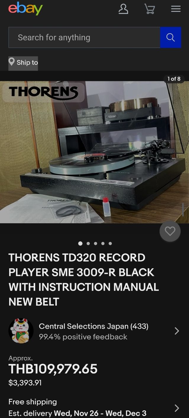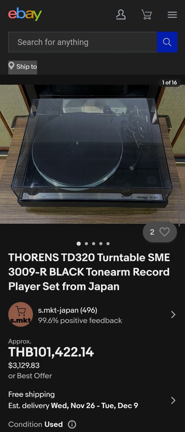 ขายเครื่องเล่นแผ่นเสียง Thorens TD-320 สภาพใหม่เก็บพร้อมกล่อง สวยหายาก เสียงดีมาก Made in Germany