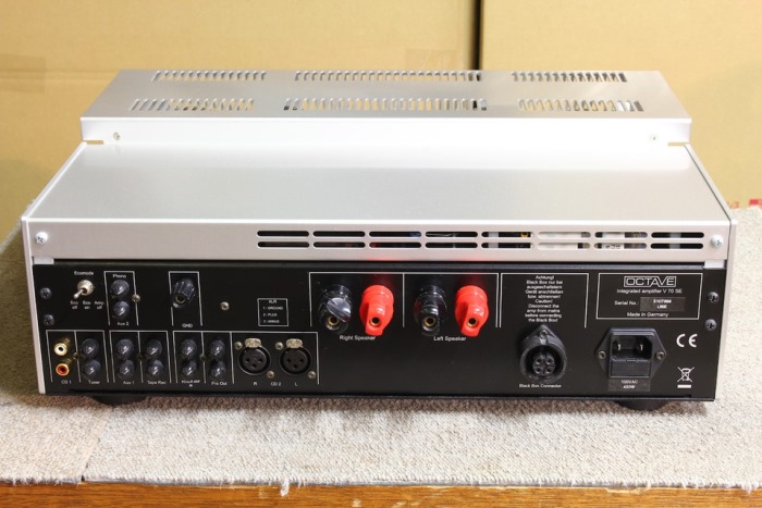 OCTAVE V-70SE(Special Edition) ผลิต USA ใช้ไฟ 220V ช่องต่อสายไฟเป็นแบบ IEC เพื่อเพิ่มทางเลือกไปใช้สายไฟฟ้า AC Power cord ที่ดีกว่าสายไฟฟ้าแบบธรรมดาที่ติดมากับตัวเครื่อง ที่สำคัญยังมีช่องต่อเชื่อมสัญญานให้เลือกใช้อย่างมากมายทั้ง Digital, Optical, COAX, AES/EBU Analog RCA รวมทั้ง XLR Balance อีกระดับคุณภาพเสียงที่เหนือกว่า RCA ทั่วไป ซึ่งสิ่งเหล่านี้จะมีติดตั้งอยู่แต่ในเครื่องเสียงตัวเครื่องระดับ Hi-End ราคาแพงสุดโต่งเท่านั้น ตัวเครื่องยังอยู่ในสภาพที่สวยงามมาก อย่างกับเป็นของใหม่ที่เพิ่งนำออกมาจากกล่อง มี Remote Control โลหะตรงรุ่นให้พร้อม