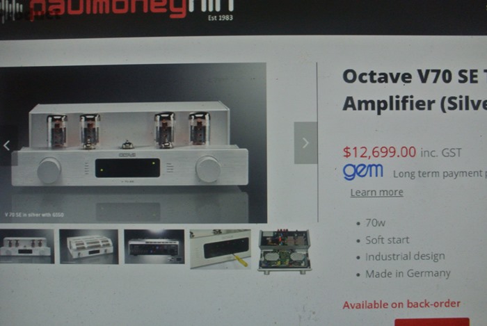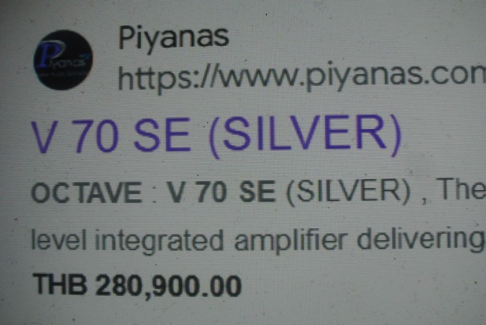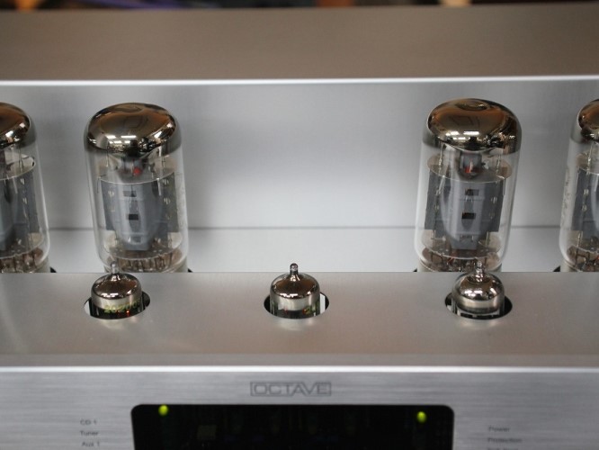 1. OCTAVE V-70SE(Special Edition) Push-Pull Ultra-Linear Class A Vacuum Tube High Defination Integrated Amplifier รุ่นพิเศษ Special Edition คุณภาพดีที่สุดในโลกระดับ Super Hi-End ภายในตัวเครื่องอัดแน่นด้วยอุปกรณ์ ชิ้นส่วน วัสดุ และวงจร High Defination ดีที่สุดพึงจะหามาได้ รวมทั้งหลอดชื่อดังระดับโลกรวม 7 หลอด แบ่งเป็นหลอด Output เบอร์ KT88 จำนวน 4 หลอด หลอด Pre และหลอด Rectifier แบบขาทองรวมอีก 3 หลอด มาพร้อมด้วยความสุดยอดสมบูรณ์แบบไม่ว่าจะเป็น 24 Bit/192kHz Burr Brown DACs และ 216MHz/12bit D/A Converter รวมทั้งชิพ ICL8010ACPD ทั้งหมด 10 ตัวเป็นภาคขยาย ที่มักจะมีติดตั้งอยู่ในเครื่องเล่นระดับ Hi-End รวมทั้ง Burr-Brown pcm1795 dac chip โดยแยกซ้ายขวาอิสระ มี Digital Input ใช้เป็น D to A ได้ พร้อมทั้ง Pre Digital ต่อตรงเข้า Amplifier ได้เลย รวมทั้ง Data Input Range : 16-20 Bits, 8 x Oversampling, S/PDIF PCM Audio และ D/A Conversion : Dual 20 Bits Co-linear PCM1702 ที่ให้พลังเสียง 70 วัตต์ต่อข้าง สามารถต่อเชื่อมแหล่งเสียงหลักได้ทั้ง CD, Tuner, Tape. AUX ตัวเครื่องสีเงิน มีขนาดใหญ่ และหนักมากยกคนเดียวแทบไม่ไหว กว้าง 45 สูง 15 ลึก 42 ซม. น้ำหนักประมาณ 23 กก.