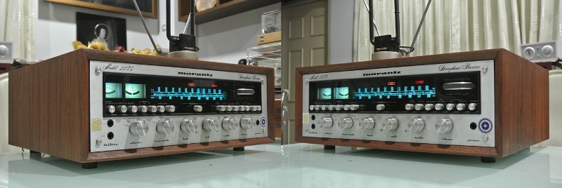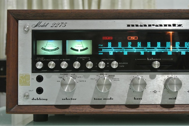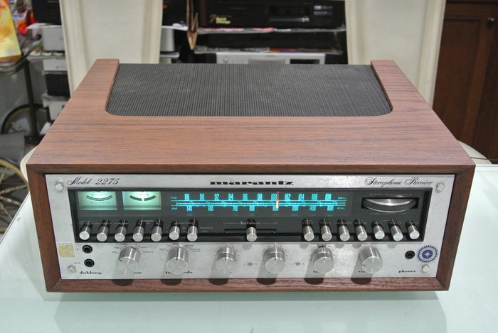 MARANTZ 2275 Stereophonic Receiver รุ่นใหญ่สุดในตระกูล 2200 Series ที่ได้รับการยกย่องจากนักวิจารณ์เครื่องเสียงทั่วโลกให้เป็น All Time World’s Best & Beautiful Receiver ที่สำคัญและแตกต่างจาก Receiver ทุกยี่ห้อก็คือ แป้นหมุนหาคลื่นวิทยุทรงจานบินแบบ Gyro-Touch Tuning ที่ช่วยให้สามารถรับคลื่น FM/AM ได้อย่างคมชัดทุกสถานี โดยเฉพาะฟังค์ชั่น Dolby FM อีกสรรพเสียงที่เหนือกว่า FM ทั่วไปเป็นอย่างมาก ไม่เพียงเท่านั้น จอ Display ยังมีขนาดใหญ่ แสดงสถานีวิทยุ พร้อมฟังค์ชั่นการใช้งานเป็นไฟเรืองแสงสีเขียว และส้มแดง มองเห็นได้อย่างชัดเจน โดยเฉพาะในที่มืด หรือมีแสงน้อย ให้บรรยากาศที่สวยงามคลาสสิคเป็นอย่างมากในยามค่ำคืน สามารถต่อเชื่อแหล่งเสียงยอดนิยมต่าง ๆ ได้อย่างครบครันไม่ว่าจะเป็น CD, Tape, Phono, AUX ด้วยพลังเสียงที่มากถึง 70 วัตต์เต็มต่อข้าง พร้อมกำลังสำรองมากมาย ตัวเครื่องพร้อมกล่องไม้ธรรมชาติสี Walnut ลวดลายสวยงาม มีขนาดใหญ่โตมโหฬาร และหนักมากยกคนเดียวไม่ไหว กว้าง 47 สูง 18 ลึก 40 ซม.น้ำหนักประมาณ 25 กก.