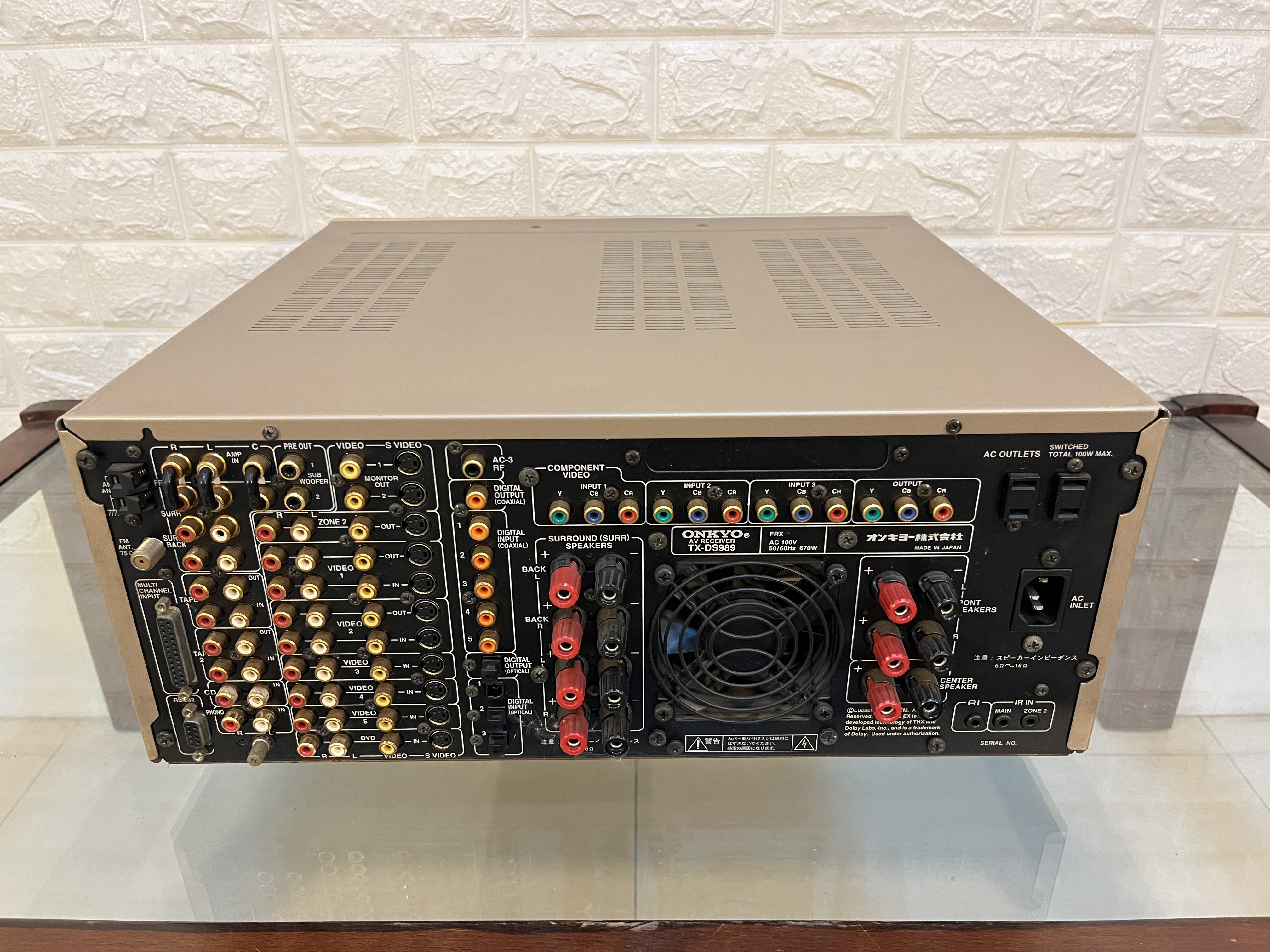 ต้องการส่งต่อ #Onkyo TX-DS989 7.1 ch สีทอง อดีตแอมป์รุ่น Top จาก Onkyo หายากและแพงมากตอนเปิดตัว ใช้ได้ทั้งดูหนังและฟังเพลง เป็นแอมป์อีกรุ่นที่ให้กำลังสำรองสูง ท่านที่ต้องการแอมป์ที่ดุดันดูหนังสนุกไม่ควรพลาด ฝาปิดหน้าเครื่อง เปิดปิดด้วยไฟฟ้า รองรับ THX Ultra certified , THX Surround EX, DTS-ES, Dolby Digital, and Dolby Pro Logic II decoding ,DTS Neo:6 สินค้ามีริ้วรอยจากการขนส่งและอายุการใช้งาน โดยรวมสภาพดี