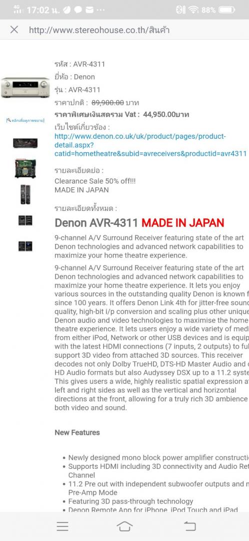 Denon AVR-4311 Made in Japan + รีโมท สภาพสวยๆครับ เครื่องรุ่นใหญ่ตัว TOPสุดหน้าปัด 2ชั้น JAPAN SPEC 100V + หม้อแปลง ระบบเสียง 9.2 channels กำลังขับ 9 x 140 watts ต่อลำโพงมากสุดถึง 11ตัว ภาคปรีเอาท์ 11.2 channels รองรับทั้ง TRUE-HD / 3D ๆลๆ เสียงอิ่มหนาไม่บาดหู กำลังขับดีมากมาย กำลังสำรองเหลือเฟือ งาน AUDIO GRADEแท้ทุกชิ้น เครื่องขนาดใหญ่ + หนักมากเกือบ 20โล ฟังเพลงอย่างเดียวเสียงดีสุดยอดระดับ 5ดาว ใช้งานเหมือนใหม่ ออกใหม่+-3000 USD บ้านเราเกือบ100000.- เจ้าของส่งมาฝากขายหน้าร้านถูกที่สุดเพียง 15900.-เท่านั้น