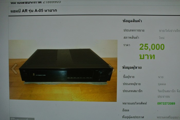 1. AR A-05 Stereo Integrated Amplifier ให้พลังเสียงได้สูงสุดถึง 100 วัตต์ต่อข้าง ต่อแหล่งเสียงได้ทั้ง Tuner, CD, Phono MM/MC, Tape 1/2 ผลิต USA ใช้ไฟ 220V