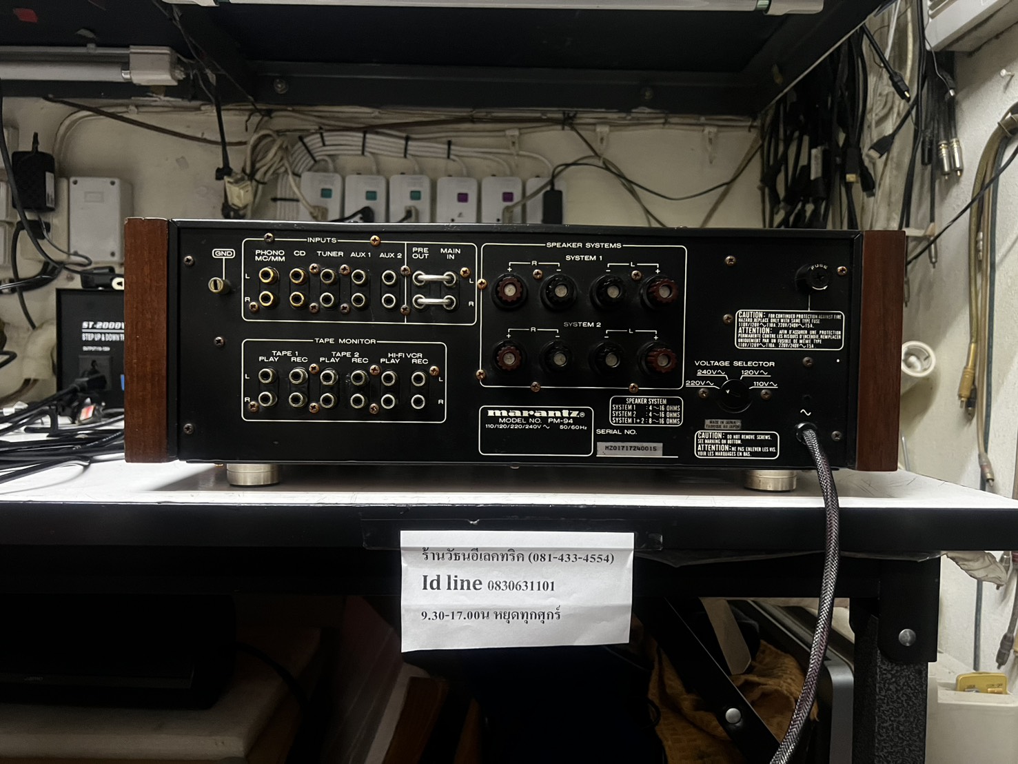 MARANTZ PM-94 MADE IN JAPAN TOP OF THE LINE SERIES 9X ไม่มีใหญ่กว่านี้อีกแล้ว สร้างมาให้เสียงดีที่สุด รองรับทั้ง CLASS A / AB ในตัว บ้านเราหายากมากนับเครื่องได้ เครื่องสเปคบ้านเราไฟ 220V ไม่ใช่ 110V เอาไปเสียบปลั๊กใช้ได้เลย สภาพเดิมสวยมาก ใช้งานเหมือนใหม่ทุกระบบ ฟังเพลงเสียงดีสุดยอดระดับ 5ดาว งาน HI END AUDIO GRADEแท้ทุกชิ้น ตัวถังทองแดงมาพร้อมPHONOในตัวทั้งMM/MC ตัวเครื่องขนาดใหญ่สุดมาพร้อมข้างไม้ในตัว หนักมากถึง 23KG ออกใหม่ 228000 เยน ไม่รวมvat *บ้านเรา 7หมื่นกว่า เจ้าของส่งมาฝากขายหน้าร้านถูกที่สุดเพียง 35900.-