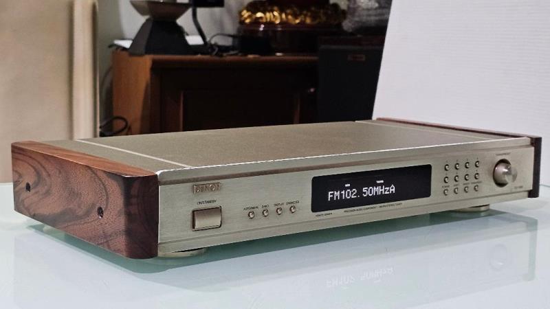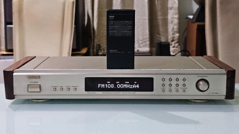 DENON TU-1500 Gold Edition Tuner รุ่นใหญ่สุด รับคลื่นวิทยุบ้านเรา AM/FM 87-108MHz ได้อย่างคมชัดทุกสถานี พร้อมทั้งตั้งสถานีวิทยุที่ชื่นชอบได้มากถึง 8 สถานี ต้วเครื่องสีทองแชมเปญ หรูหรามากคุณค่า เข้าด้านข้างด้วยไม้ธรรชาติแท้สี Walnut ลวดลายสวยงาม เพิ่มคุณค่า และความคลาสสิคได้เป็นอย่างมาก ต้วเครื่องรวมข้างไม้ธรรมชาติกว้าง 60 สูง 8 ลึก 25 ซม. น้ำหนัก 4 กก. สภาพสุดสวยอย่างกับเป็นของใหม่ มาพร้อม Remote Control ตรงรุ่น