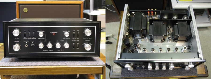 Amp.Power Transistor) อันโด่งดังที่พัฒนาขึ้นมาใหม่ ที่สำคัญใช้หม้อแปลงถึง 2 ชนิด มีทั้งแบบ EI สำหรับภาคปรี และ Toroidal สำหรับภาคขยาย โดยดึงคุณสมบัติของหม้อแปลงทั้งสองแบบ มาติดตั้งสำหรับวงจรที่เหมาะสมที่สุด เพื่อให้ได้มาซึ่งความเป็นสุดยอดอย่างแท้จริง ที่สำคัญยังติดตั้งสุดยอดหลอดระดับโลกมากถึง 12 หลอดแบ่งเป็นเบอร์ 6L6GC 4 หลอด 12AX7 5 หลอด 12BH7A 2 หลอด และ 6AQ8 1 หลอด โดยภาค Output ใช้หลอด 6L6GC Push-Pull Bias-class AB1 ใช้หม้อแปลง Output Sansui SW-50 ที่ออกแบบให้มีขด cathode feedback แนวทางการออกแบบของ Sansui จะรีดเอากำลังขับจากหลอดที่ใช้ให้มากที่สุด ทำให้ภาคเพาเวอร์ 6L6-GC ทำงานที่แรงดันเพลต 485V สามารถสร้างกำลังขับออกมาได้สูงสุดถึง 80 วัตต์ต่อข้าง โดยมีความเพี้ยนต่ำกว่า 0.8% ซึ่งวงจร 6L6 Push-Pull ทั่วไปให้กำลังขับได้เพียงประมาณ 25 วัตต์เท่านั้น วงจรในภาค Preamplifier เป็นแบบ Cathode Follower ใน Stage แรก และมีภาคขยาย 3 Stage แยกอิสระสำหรับ Tone Control ภาค Low/high filters, loudness และ presence ภาค Tone Control สามารถเลือกให้ตัดปุ่มปรับเสียงสูง Treble และเสียงทุ้ม Bass ออก และเลือกความถี่จุดตัดสำหรับปรับสูง Treble และเสียงทุ้ม Bass ได้ ภาค Pre Phono เป็น Solid State เพื่อให้ค่าสัญญาณรบกวนต่ำที่สุด สามารถต่อเชื่อมกับลำโพงได้มากถึง 2 คู่ และแหล่งเสียงหลักได้อย่างครบครันทั้ง Tuner, CD, Phono, Aux พร้อมช่อง Pre Out สำหรับต่อเชื่อมกับ Power Amplifier เพื่อทำหน้าที่เป็น Preamplifier ได้อย่างยอดเยี่ยม