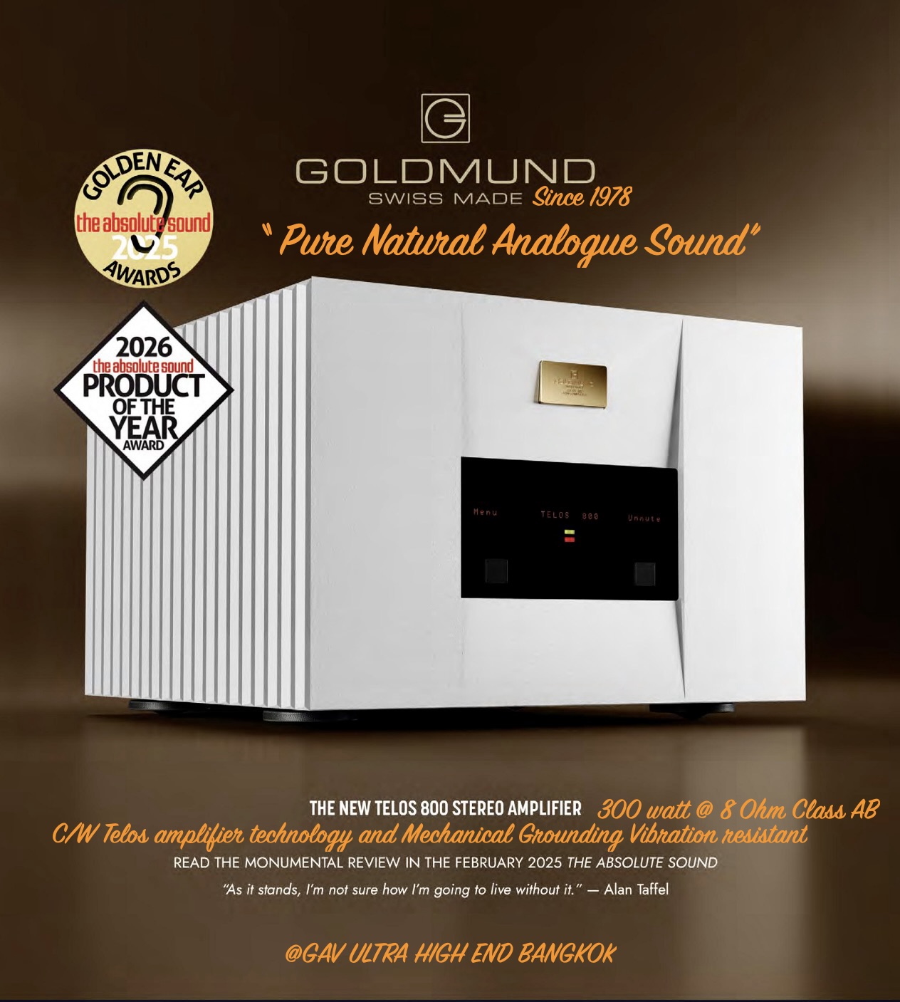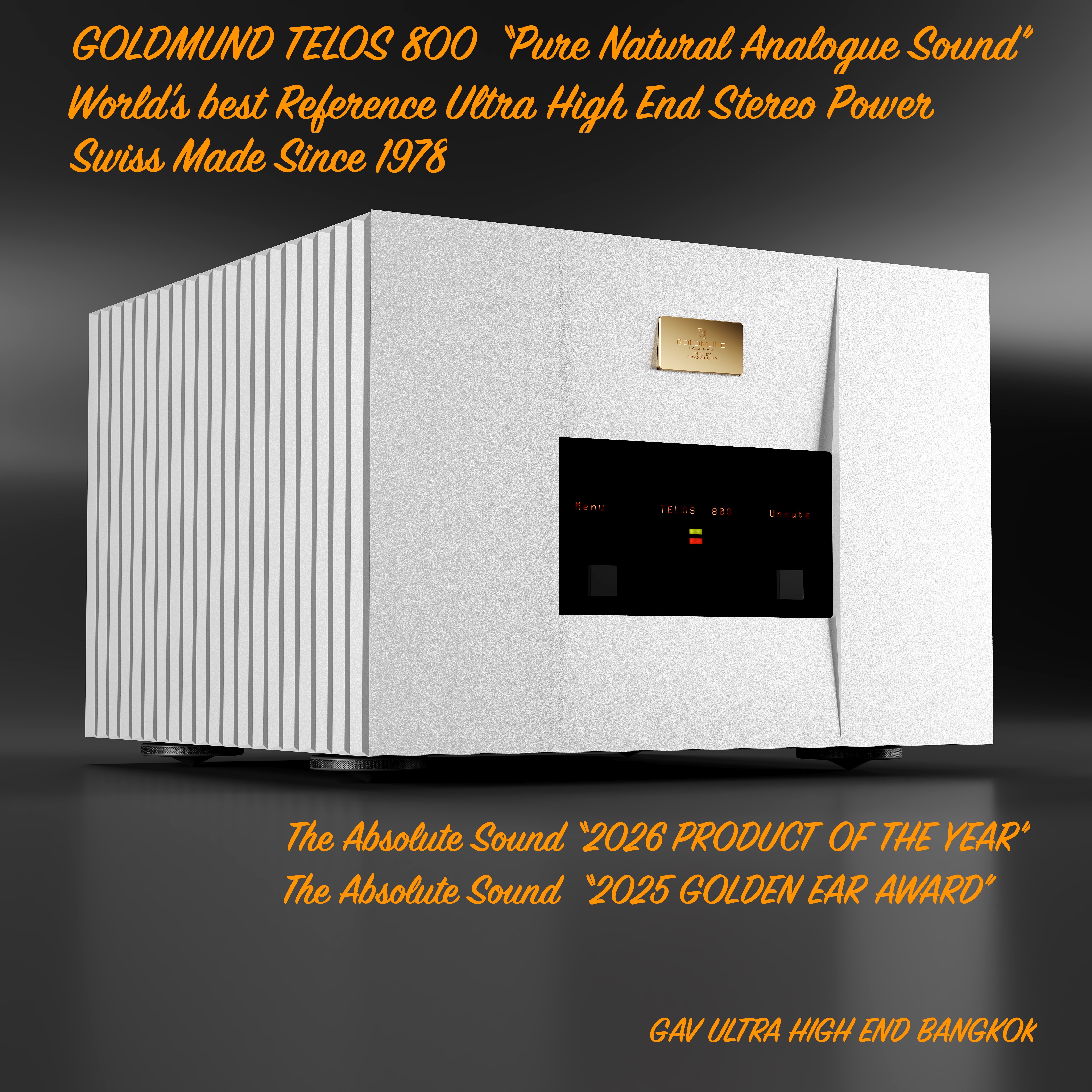World's Best Reference No.1 Luxury Ultra High End Audio Products ,GOLDMUND TELOS 800 Stereo Power Amplifier ที่สุดของแอมป์สเตอริโอระดับอัลตร้าไฮเอ็นด์ ต้นแบบเครื่องเสียงจากสวิส นับตั้งแต่ปี คศ.1978 ที่สุดของคุณภาพเสียงดีเยี่ยม และ การออกแบบรูปลักษณ์สวยงามไร้กาลเวลา All new GOLDMUND TELOS 800 Stereo Power Amplifier , Class AB Amplifier c/w Telos amplifier Technology and Mechanical Grounding Vibration Resistant System , The World's Best Pure Natural Analogue Sound and Most timeless beauty designed Ultra High End Amplifier.นำเข้า และ จัดจำหน่าย โดย GAV Ultra High End Bangkok โทร หรือ แอดไลน์ มาที่ 081 4423549