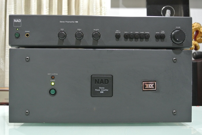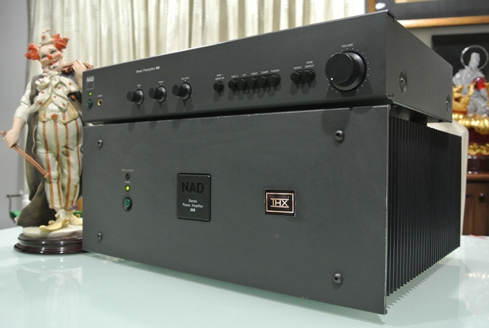 NAD 208 THX สุดยอด Fully Balance Power Amplifier รุ่นใหญ่สุด Top of The Line จากดินแดนผู้ดีประเทศอังกฤษ เป็นรุ่นที่มีรูปแบบการดีไซน์จะมีความแตกต่างจาก NAD รุ่นทั่วไป ด้วยขนาดใหญ่โตมโหฬาร ด้วยขนาดกว้าง 44 สูง 18 ลึก 38 ซม. และน้ำหนักมากถึง 25 กก. แล้ว ที่สำคัญตัวเครื่องด้านข้างทั้งสองยังติดตั้งครีบ Heat Zink ขนาดใหญ่ เพื่อช่วยระบายความร้อนอีกแรงหนึ่ง นอกเหนือจากด้านบนตัวเครื่อง ด้วยพลังเสียงที่มากถึง 250 วัตต์ต่อข้าง โดยมีสัญญลักษณ์ THX รับประกันถึงความสุดยอดของคุณภาพ และมิติเสียง