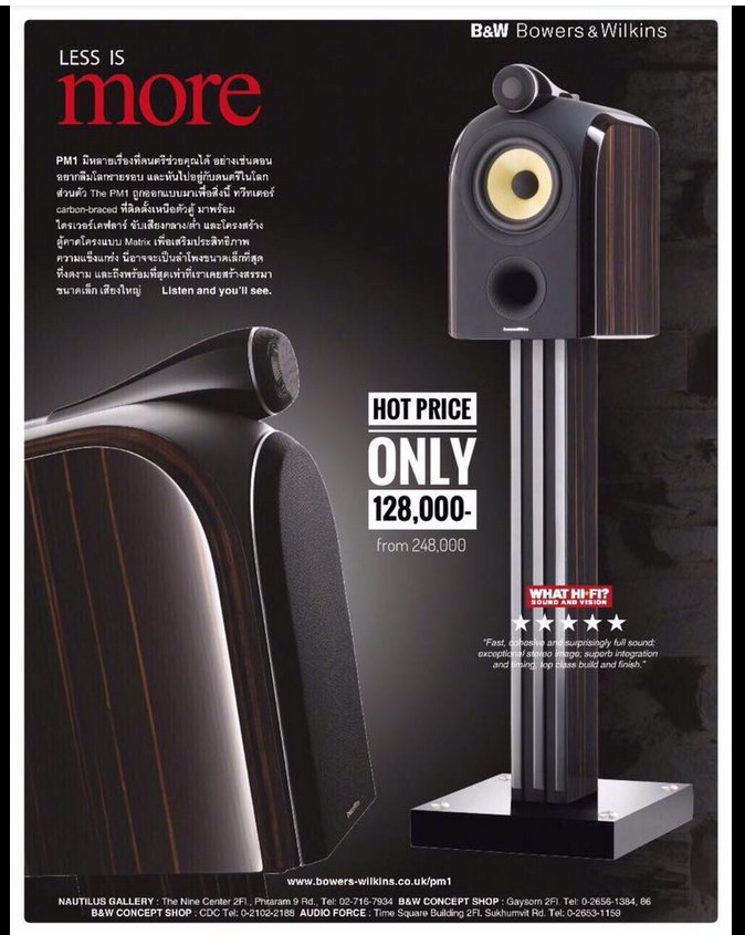 สุดยอดลำโพงฟังเพลง HI ENDระดับบนมาพร้อม NAUTILUS TWEETER ที่ติดตั้งกับ B&W ตระกูลสูงสุดไม่มีในระดับกลาง/ระดับล่าง ได้รางวัลมากมาย + WHAT HIFI 5 STARเป็นประกัน เสียงดี5ดาว+++ ลองมาฟังแล้วจะรู้ถึงความแตกต่าง เป็นลำโพงตระกูลสูงสุด เทคโนโลยี่ล่าสุดตัวเล็กลงแต่ให้เบสที่ใหญ่มีมิติ เพิ่มมวลเสียงมากขึ้นแบบหาไม่ได้อีกแล้วในลำโพงSIZEเดียวกัน ออกห้าง 248000.-ลดแล้วเหลือ 138000.-เจ้าของส่งมาฝากขายหน้าร้านถูกที่สุดปล่อยเพียง 59900.-เท่านั้น