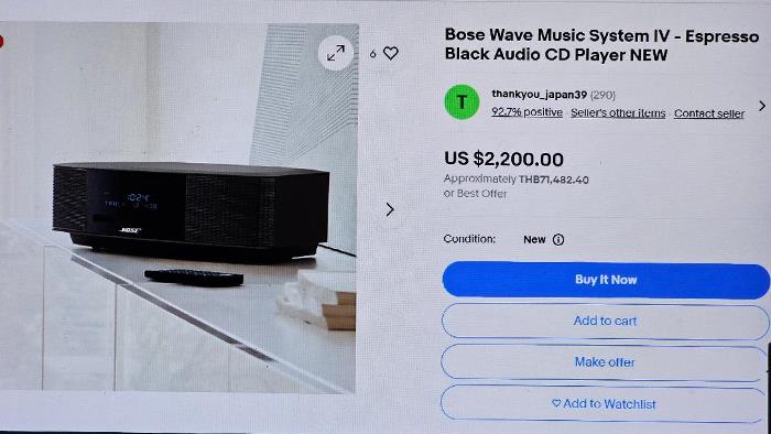BOSE Wave Music System IV และ Dock Wirless Bluetooth Soundtouch Pedestal ตัวเครื่องสีดำ Espresso Black ที่ได้รับความนิยมสูงสุด ผลิต Mexico บ้านใกล้เรือนเคียงกับ USA ไม่ใช่ Made in China เหมือนเช่นในปัจจุบัน สภาพยังสวยสมบูรณ์ อย่างกับเป็นของใหม่ ใช้งานได้เป็นปกติทุกอย่าง มี Remote Control ขนาดเล็กเท่าบัตรเครดิต CD ให้พร้อม เหมาะอย่างยิ่งที่จะมีไว้วางในห้องนอน ห้องทำงาน ห้องนั่งเล่นภายในบ้าน สำนักงาน หรือร้านค้าขนาดเล็กได้อย่างสวยงาม