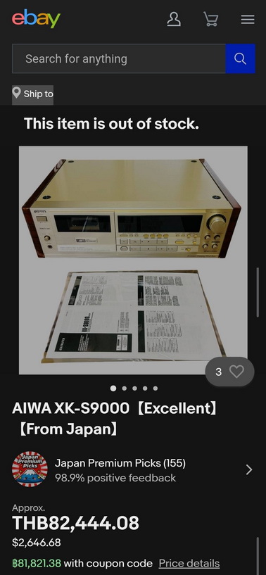 ขายเครื่องเล่นเทป AIWA รุ่น XK-S9000 ระบบ 3 หัวเทป รุ่น Top สภาพสวยหายาก เสียงดีมาก Made in Japan