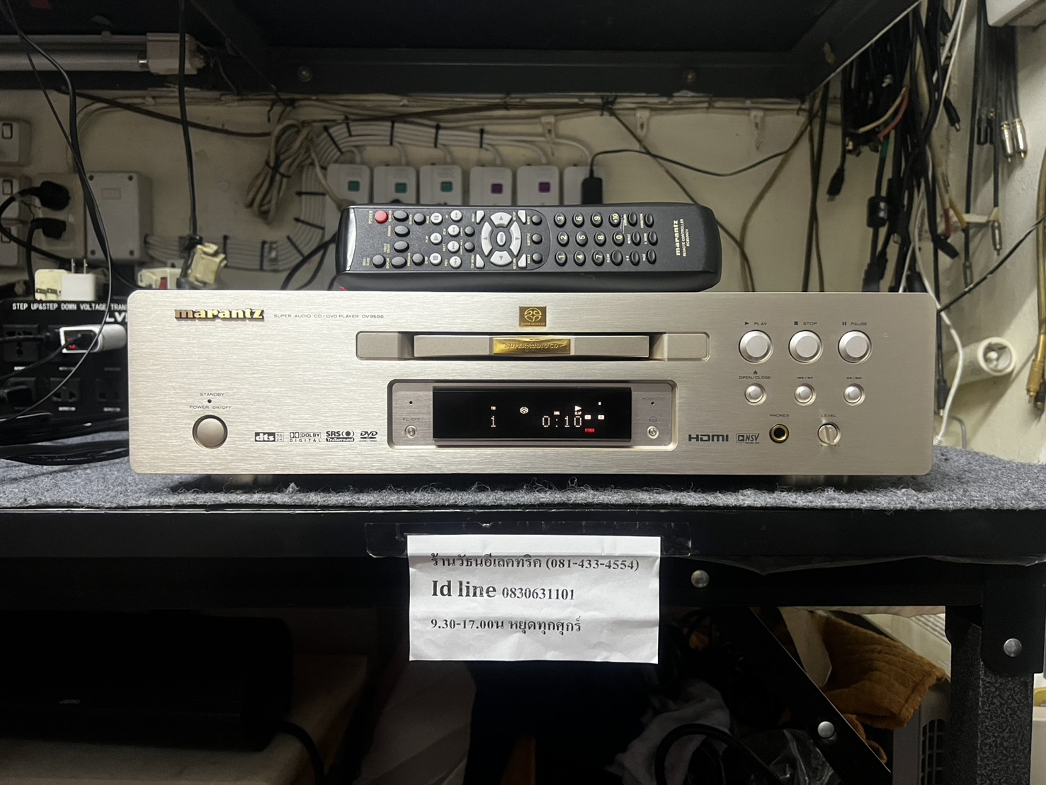 MARANTZ DV9500 MADE IN JAPAN รุ่นพิเศษ+รุ่นเรือธงSERIES 9XXX ไม่มีใหญ่กว่านี้ ไม่มีเสียงดีกว่านี้อีกแล้ว เครื่องสเปคบ้านเราไฟ 220V หายากมาก สภาพเดิมสวยมาก + รีโมทคอนโทรล อ่านแผ่นปกติทุกแผ่น ทั้งMASTER / COPY / WRITE ๆลๆ ตัวนี้เป็นUNIVERSAL DISC PLAYER รองรับแผ่นDVDทุกZONE ไม่เลือก รองรับแผ่นมากมายทั้ง * DVD * SA-CD * VCD * CD * MP-3 *หัวอ่านดีมาก + มีเปลี่ยนทั่วไปไม่แพงเวลาเสีย งานภายใน+ภายนอกทุกชิ้นAUDIO GRADEแท้ + ทอง24K ใช้งานเดิมๆสมบูรณ์เหมือนใหม่ ออกใหม่เกือบแสนบาท สวยเดิมเจ้าของฝากขายถูกที่สุดเพียง 9900.-เท่านั้น*รุ่นนี้ สีนี้ สภาพนี้ ทั้งสวย ทั้งเสียงดี +งานJAPANแท้เอาไปฟังเพลงอย่างเดียวยืนยันเสียงดีกว่าเครื่องเล่นCDใหม่ระดับต่ำกว่า50000.-ลงมาทุกตัวแน่นอน*
