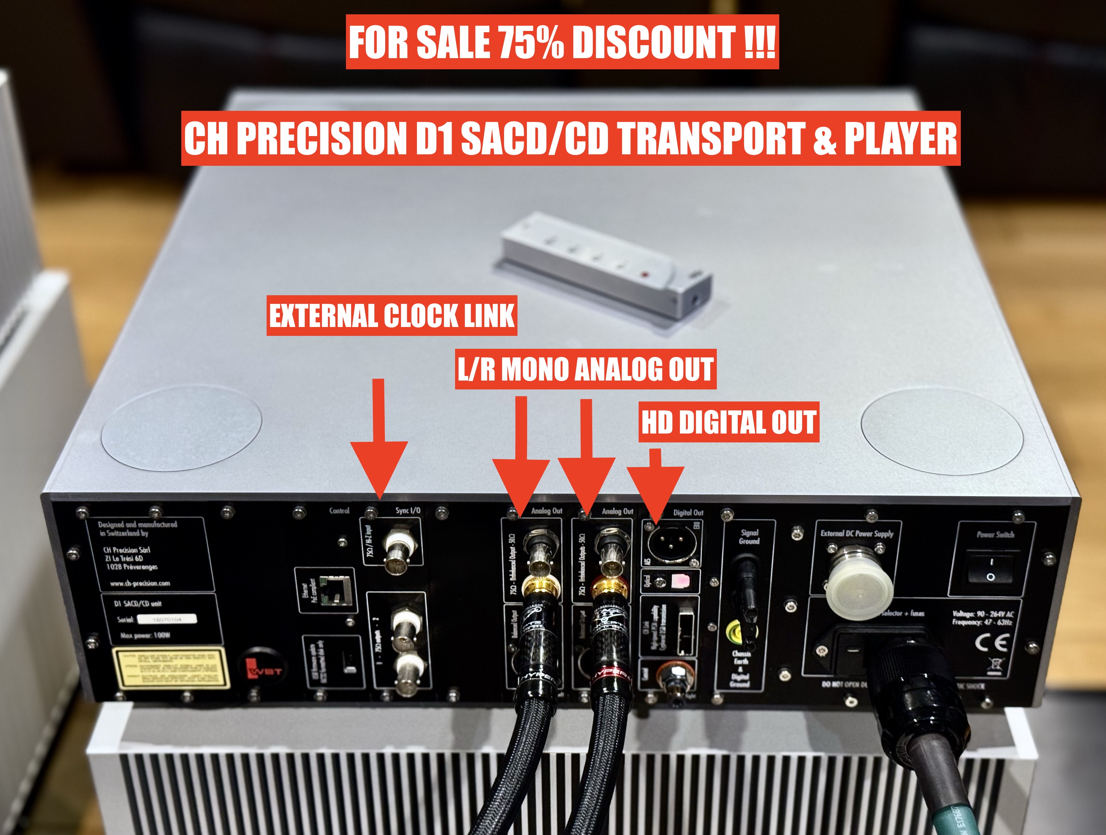 ลดราคากว่า 75% ถูกกว่านี้ไม่มีแล้วครับ YEAR END GRAND SALE 2025 เครื่อง CH PRECISION D1 CD& SACD Player & Transport ( without original box ) จัดเต็ม Fully loaded Option Analog Out Left/Right Boards ,อัพเกรดบอร์ดดิจิตอลใหม่เป็น Digital Out HD Board รองรับระบบเสียง MQA , External Clock Sync ดีกว่ารุ่น D1.5 ที่ใช้บอร์ดต่างๆเหมือนกันหมดยกเว้นชุดถาดที่ D1 ใช้ Modified Esoteric Based ส่วน D1.5 ใช้ Marantz Based จากราคามือหนึ่ง