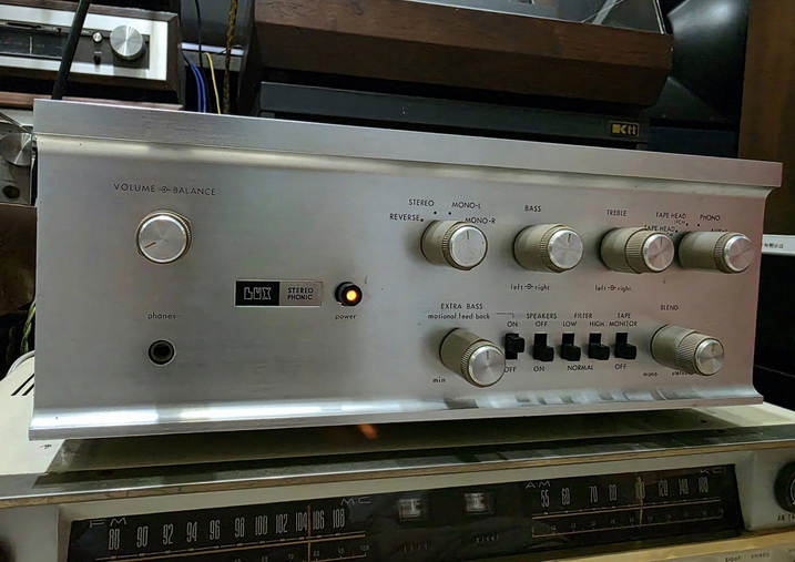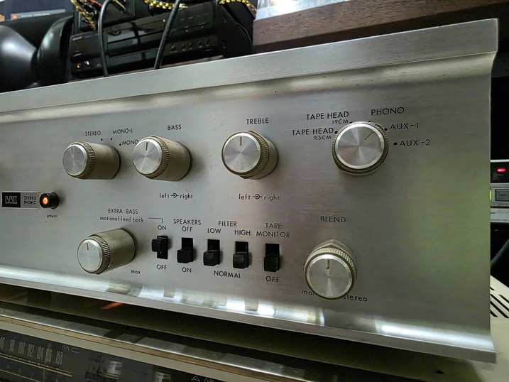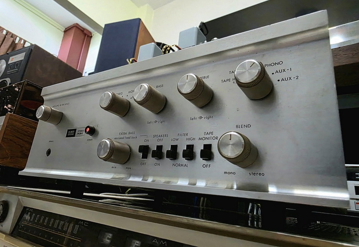 a three-head tape recorder, and a blend control to adjust the spread of the stereo sound source.