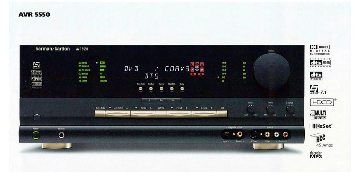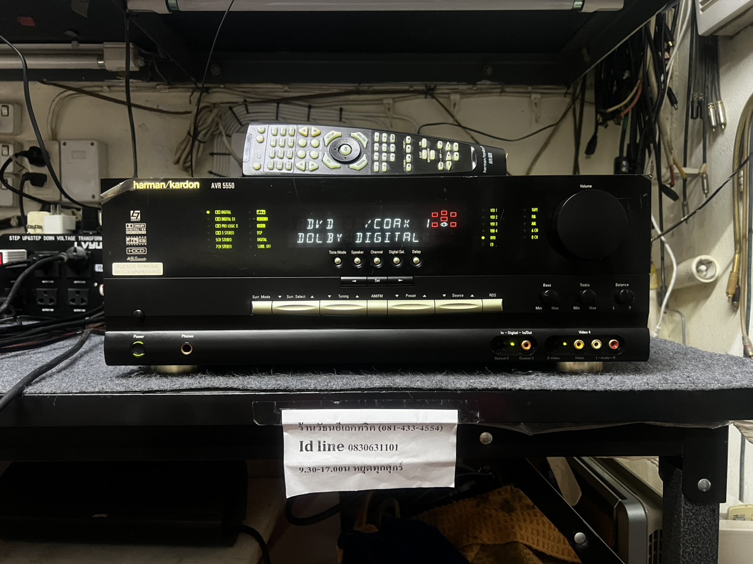 HARMAN KARDON AVR 5550 + รีโมท เครื่องศูนย์บ้านเรา ไฟ 220V สภาพเดิมสวยมาก*พลาสติกหน้าเครื่องยังไม่ลอก* ดูหนัง+ฟังเพลงเสียงดีสุดยอดระดับ 5ดาว ใช้งานเหมือนใหม่ ตัวเครื่องขนาดใหญ่สุด + หนักสุดถึง 20 KG วัตต์แท้ + วัตต์ USAมากสุดถึง 85W /CH พลังเสียงหนักแน่น ทรงพลังเกินตัวเกินราคาหลายเท่า ออกใหม่ 77900.- เจ้าของส่งมาขายหน้าร้านถูกๆเพียง 5900.-เท่านั้น
