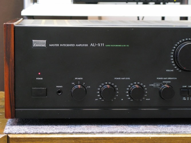 SANSUI AU-X11 ผลิต Japan สำหรับวางจำหน่ายในประเทศญี่ปุ่นเท่านั้น ที่มาตรฐานคุณภาพเหนือกว่ารุ่นที่ส่งมาขายในกลุ่มประเทศเอเซีย รวมทั้งไทย จึงใช้ระบบไฟฟ้า100V ที่หาไม่ได้อีกแล้วในปัจจุบัน ตัวเครื่อง กล่องไม้ยังสวยสมบูรณ์ ปุ่มควบคุมการทำงานทั้งหมด ยังใช้งานได้เป็นปกติอย่างมีประสิทธิภาพ