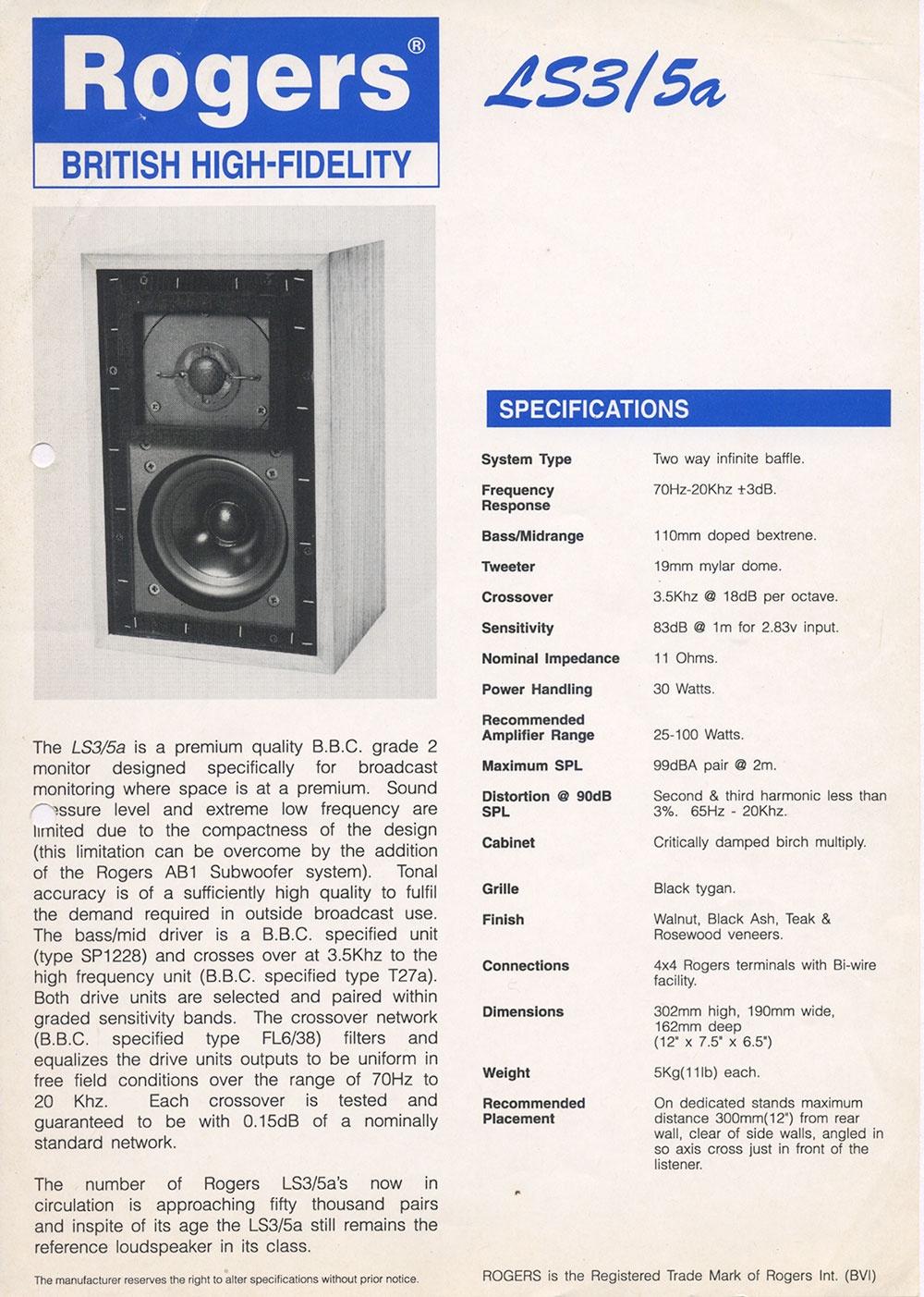 ROGERS LS 3/5A MADE IN ENGLAND