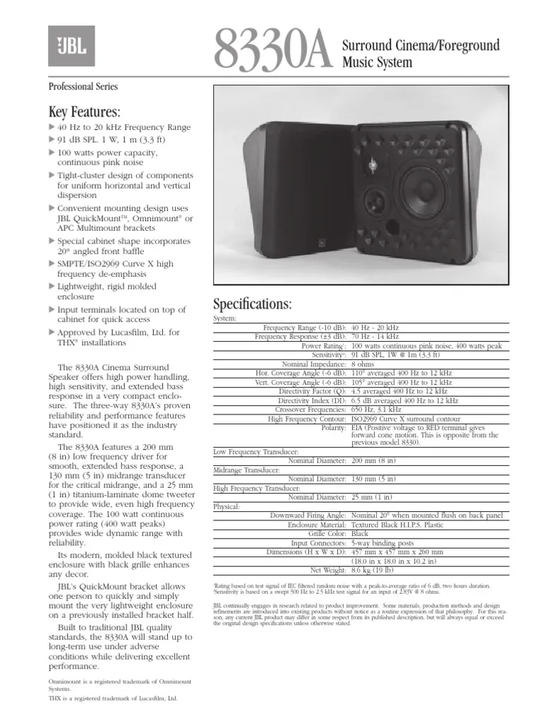 เป็นลำโพงที่ผ่านการรับรองสำหรับติดตั้งระบบ THX โดย Lucasfilm จึงมั่นใจได้ถึงคุณภาพเสียงระดับโรงภาพยนตร์