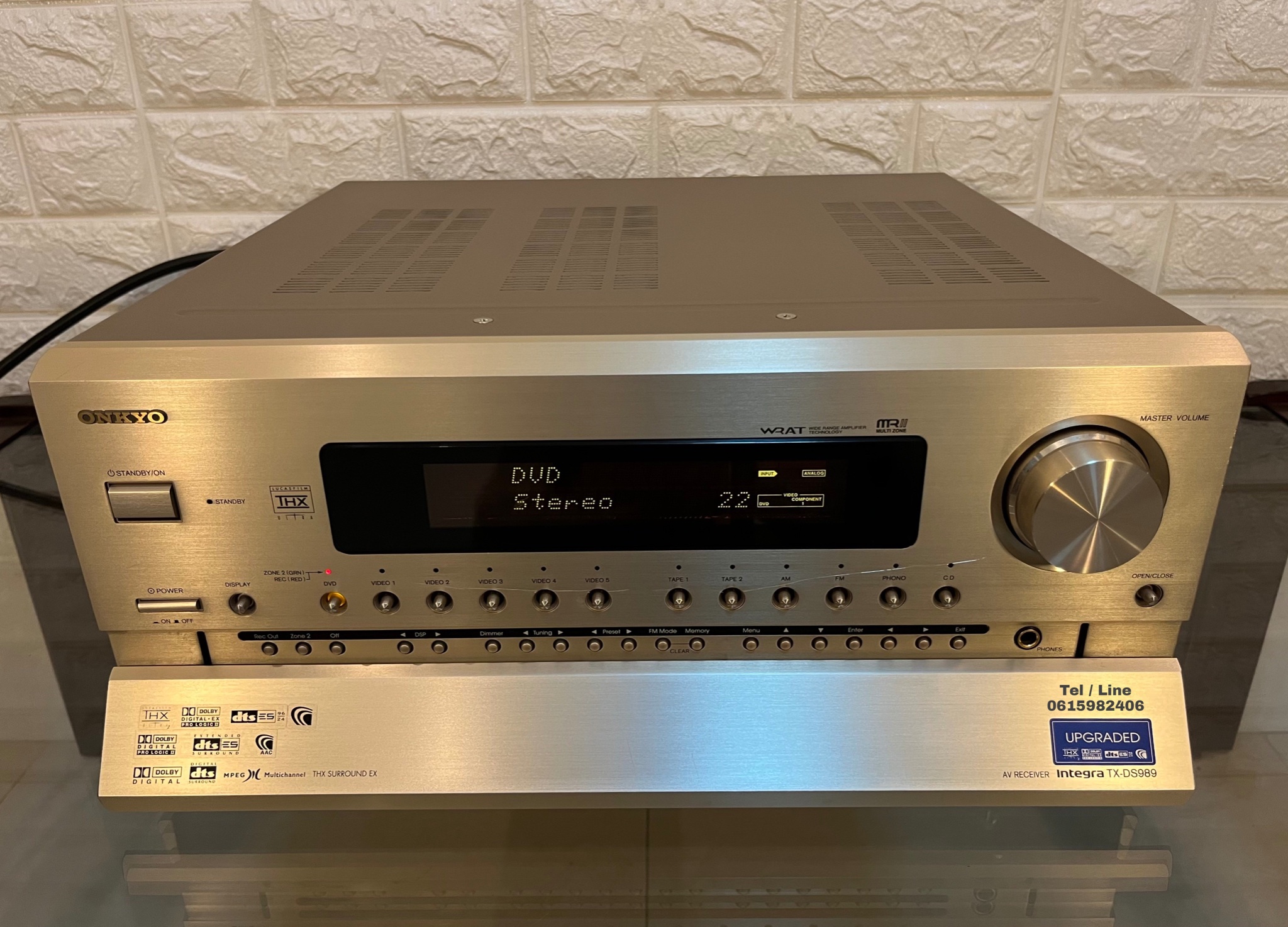 ต้องการส่งต่อ #Onkyo TX-DS989 7.1 ch สีทอง อดีตแอมป์รุ่น Top จาก Onkyo หายากและแพงมากตอนเปิดตัว ใช้ได้ทั้งดูหนังและฟังเพลง เป็นแอมป์อีกรุ่นที่ให้กำลังสำรองสูง ท่านที่ต้องการแอมป์ที่ดุดันดูหนังสนุกไม่ควรพลาด ฝาปิดหน้าเครื่อง เปิดปิดด้วยไฟฟ้า รองรับ THX Ultra certified , THX Surround EX, DTS-ES, Dolby Digital, and Dolby Pro Logic II decoding ,DTS Neo:6 สินค้ามีริ้วรอยจากการขนส่งและอายุการใช้งาน โดยรวมสภาพดี