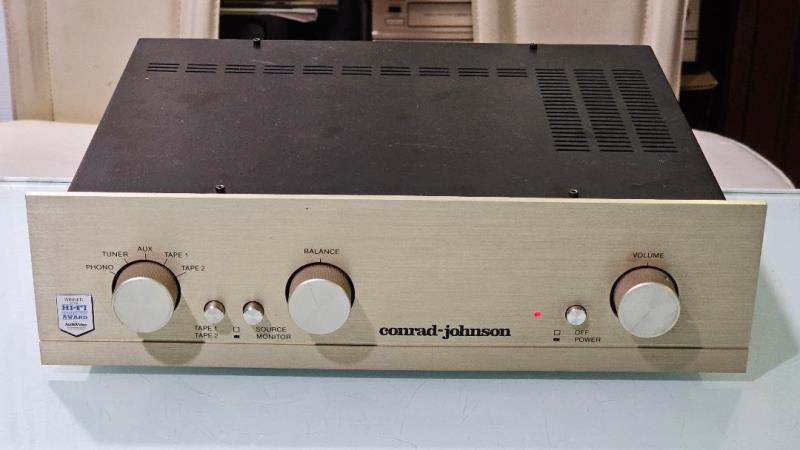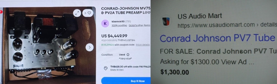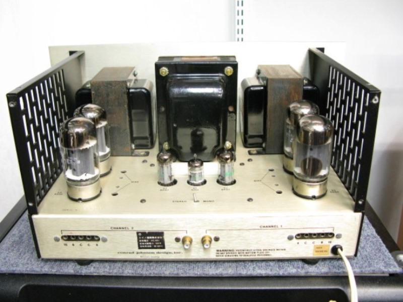 2. เข้าคู่ด้วย CONRAD-JOHNSON MV-75 Vacuum Tube Push-pull Power Amplifier ระดับตำนาน Hi-End ภายในตัวเครื่องยังติดตั้งแต่อุปกรณ์ ชิ้นส่วน วัสดุ และวงจรที่คัดสรรมาแต่ Audiophile grade ระดับ Premium ดีที่สุดเท่าที่จะหามาได้ รวมทั้งสุดยอดหลอดระดับโลกรวม 7 หลอดประกอบด้วย 4x6550 (output), 2x6CG7, 1x5751 จึงให้คุณภาพ และมิติเสียงที่ยอดเยี่ยมมาก ทั้งหวาน เนียน นุ่ม แต่เต็มไปด้วยความหนักแน่นจริงจัง มีตัวตน สดใสเป็นประกาย ระยิบระยับคล้ายดั่งเสียงแก้ว Crystal สะอาด บริสุทธิ์ เกลี้ยงเกลา และมีความเที่ยงตรง แม่นยำมากที่สุด ด้วยพลังเสียง 75 วัตต์ต่อข้าง ซึ่งถือว่าสูงมากสำหรับ Vacuum Tube Push-pull Power Amplifier ตัวเครื่องสีทองหรูหรามากคุณค่า มีขนาดใหญ่ และหนักมาก กว้าง 49 สูง 14 ลึก 31 ซม. น้ำหนักประมาณ 20 กก.