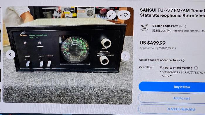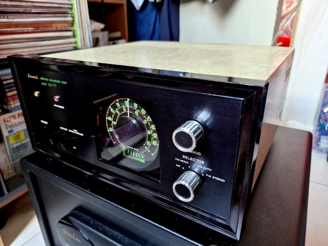 1. SANSUI TU-777 Stereo FM/AM Tuner ดีไซน์สวยโดดเด่น แปลกตาแตกต่างจากทั่วไป ด้วยจอแสดงสถานีวิทยุเป็นทรงทรงกลมไม่ใช่สี่เหลี่ยม แสดงสถานีวิทยุ พร้อมสัญญาณความแรงของคลื่นเป็นไฟสีเขียวเย็นสบายตา มองเห็นได้อย่างชัดเจน โดยเฉพาะในสถานที่ ๆ มีแสงน้อย หรือยามค่ำคืน ช่วยเพิ่มบรรยากาศในการฟังเพลงได้เป็นอย่างมาก สามารถรับคลื่นวิทยุได้อย่างคมชัดทุกสถานี ตัวเครื่องมีขนาดใหญ่ และหนักพอสมควร กว้าง 35 สูง 16 ลึก 34 น้ำหนักประมาณ 8 กก.