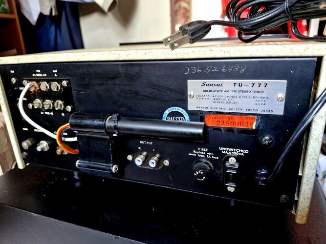 SANSUI TU-777 ผลิต Japan ไม่ใช่ China สำหรับวางจำหน่ายในประเทศญี่ปุ่นเท่านั้น จึงใช้ไฟ 100V ของแท้ไม่ได้นำมาดัดแปลงแต่อย่างใด แต่เนื่องจากบริโภคไฟน้อยมากเพียง 10VA เท่านั้น จึงมี Adaptor ขนาดเล็กให้ไปด้วย สามารถนำไปเสียบเข้ารางไฟบ้านเราได้เลยที่ หาไม่ได้อีกแล้วในปัจจุบัน ตัวเครื่องยังอยู่ในสภาพที่สวยงามมาก ไฟทุกดวง รวมทั้งไฟ Stereo ยังติดสว่าง ปุ่มควบคุมการทำงานทั้งหมด ยังใช้ได้เป็นปกติ