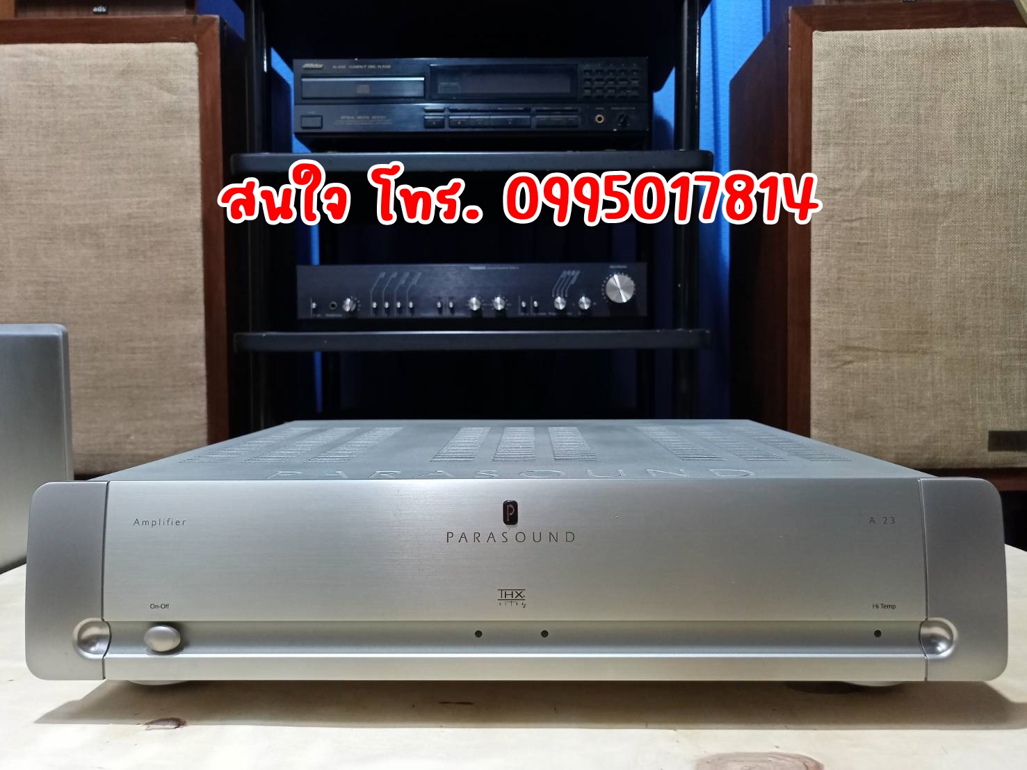 ขายเพาเวอร์แอมป์ Parasound Halo A23 มีสองตัวให้เลือก เป็นแอมป์สองแชนแนลกำลังขับ 125 วัตต์ จับคู่กับภาคปรีดีๆ สำหรับใช้ฟังเพลงให้เสียงพริ้วฉ่ำกำลังดี มีความเป็นดนตรีสูง Dynamic ดี เนื้อเสียงกลางๆ เบสไม่หนาหรือมากมายจนมากเกินไป โทนัลบาลานซ์ดี เบสมีคุณภาพ ออกแบบวงจรโดย John Curl ในตํานาน