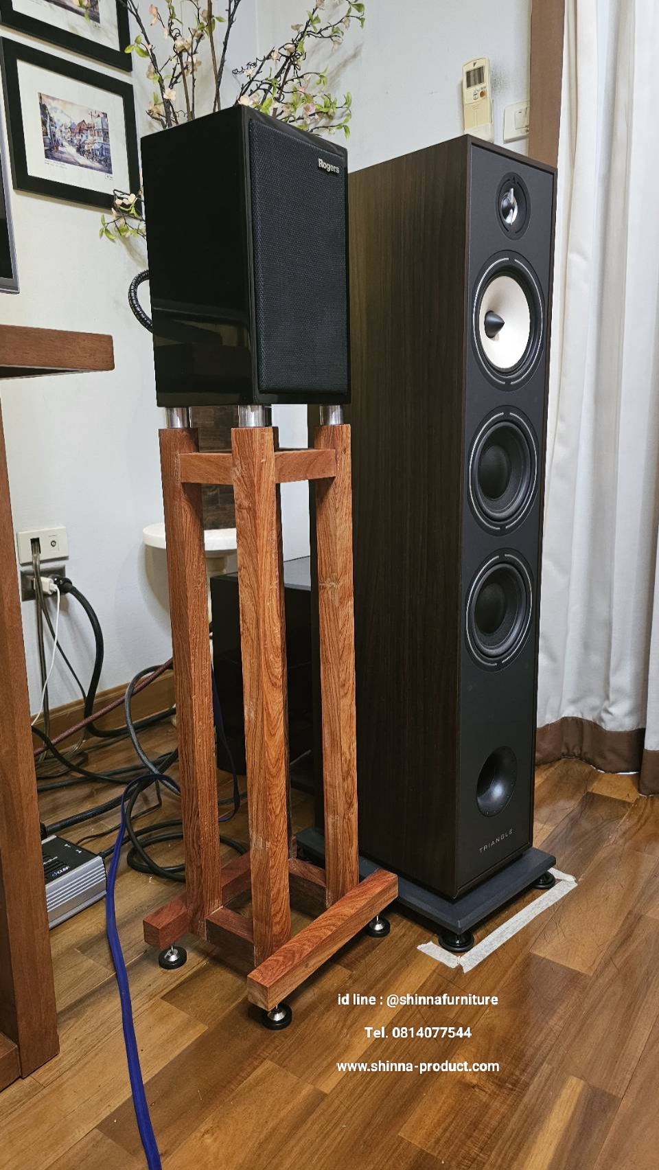 ขาตั้งลำโพงไม้ประดู่สำหรับลำโพงวางหิ้งทั้งหลาย คู่นี้ สามารถวางลำโพงวางหิ้งรุ่นดังได้หลายรุ่น เช่น roger ls3/5a. proac 1sc. Totem model 1. Harbeth 3p. หรือสามารถสั่งทำตามขนาดที่ต้องการได้ ความพิเศษของขาตั้งลำโพงรุ่นนี้คือ สามารถเลือกวางลำโพงได้หลายรูปแบบ