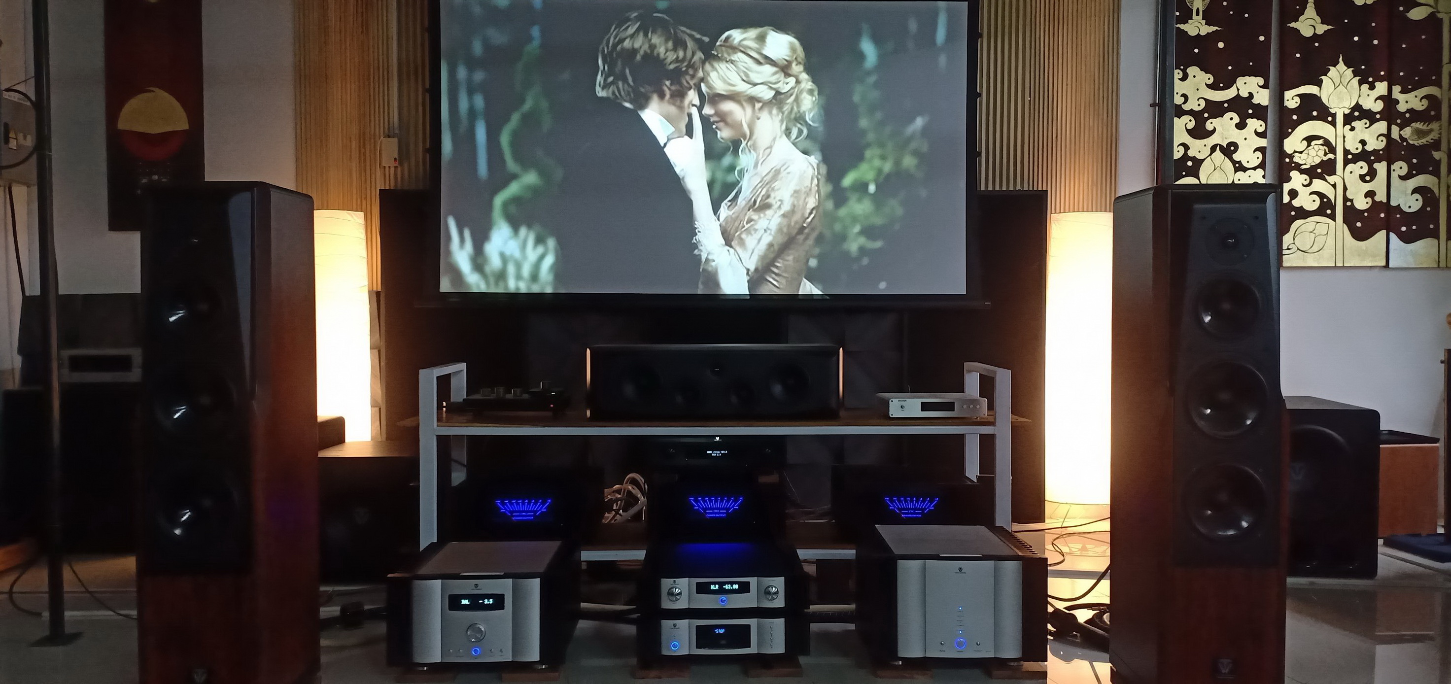 AD-7300PA+ แอมป์รุ่นเรือธงของ Tonewinner มาขับแชนแนลที่เหลือ จริง ๆ ก็เปลืองของน่ะ เหมือนเอาเฟอร์รารี่มาขับซอยสุขุมวิท 49 อย่างไรอย่างนั้น 5555 แต่ในเมื่อมีแอมป์อยู่ในมือก็เอามาเติมให้เต็มระบบ ผลักดันเสียงจากด้านหลังไปด้านหน้า บรรยากาศเต็มห้อง คือเต็มจริง ๆ จากหลังไปหน้า ฝ้าเพดานถึงพื้น เสมือนคุณอยู่ในเหตุการณ์จริง ถ้างบจำกัดก็ใช้ AD-5100PA แอมป์ห้าแชนแนล สองเครื่องทำหน้าที่แทนก็ได้ ได้ครบระบบ 13 channels และที่สำคัญ AD-2500PRO x 2 + AD-7300PA+ ราคาเท่ากับแอมป์ 7 channels ของแบรนด์ทางอเมริกา แต่....คุณภาพเสียงของเราไม่เป็นรองแน่นอนครับ (จะพูดว่าดีกว่า เดี๋ยวคุณจะหมั่นไส้เอา 5555) และถ้าเอา AD-5100PA x 2 เครื่องมาแทน 7300PA+ ก็จะประหยัดไปได้อีกหลายหมื่นทีเดียว ในคุณภาพเสียงใกล้เคียงกัน
