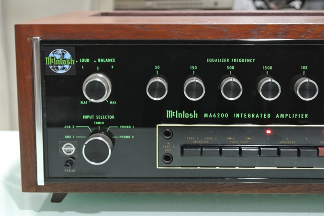 McINTOSH MA-6200 Integrated Amplifier รุ่นใหญ่พิมพ์นิยม ด้วยพลังเสียง 100 วัตต์ต่อข้าง ที่สำคัญยังเป็น Stereo Integrated Amplifier รุ่นใหญ่เพียงไม่กี่รุ่นที่มีการติดตั้ง Equalizer 5 ระดับเสียงที่เลือกปรับใช้ตามความชื่นชอบอีกด้วย สามารถต่อเชื่อมลำโพงได้มากถึง 3 คู่ พร้อมทั้งแหล่งเสียงหลัก ๆ ได้อย่างครบครันทั้ง Tuner, CD, Tape, Aux, Phono ไม่เพียงเท่านั้นยังมีช่องสัญญาณ Pre Out สำหรับต่อเชื่อมกับ Power Amplifier เพื่อทำหน้าที่เป็น Preamplifier ได้อย่างยอดเยี่ยมอีกด้วย ตัวเครื่องมีขนาดใหญ่ และหนักพอสมควร กว้าง 44 สูง 18 ลึก 40 ซม. น้ำหนักประมาณ 17 กก.