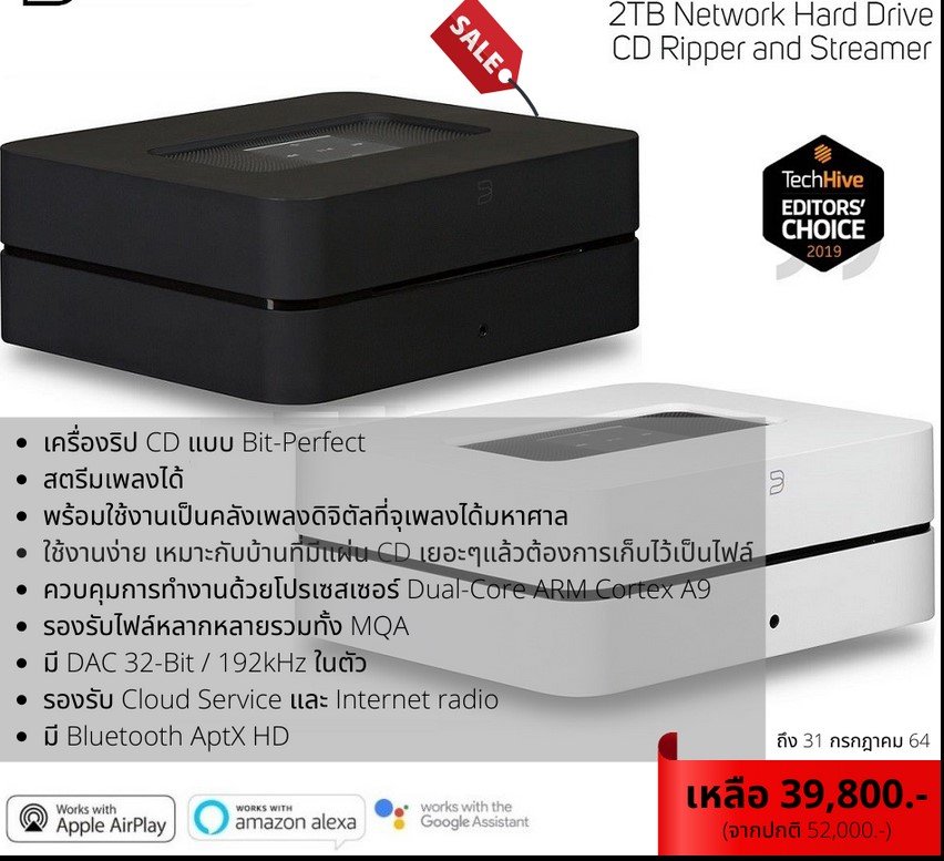 เป็นทุกอย่างให้เธอแล้ว กับเครื่องริปแผ่นซีดี + เครื่องสตรีมมิ่งเพลง + ฮาร์ดดิสค์ขนาด 2TB ในตัวจุเพลงได้เป็นแสน นอกจากจะริปเพลงได้ภายในเวลาอันรวดเร็วแล้ว ยังจัดเก็บในรูปแบบ Bit Perfect คือสมบูรณ์แบบที่สุดและมีความละเอียดสูงอีกด้วย