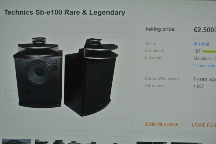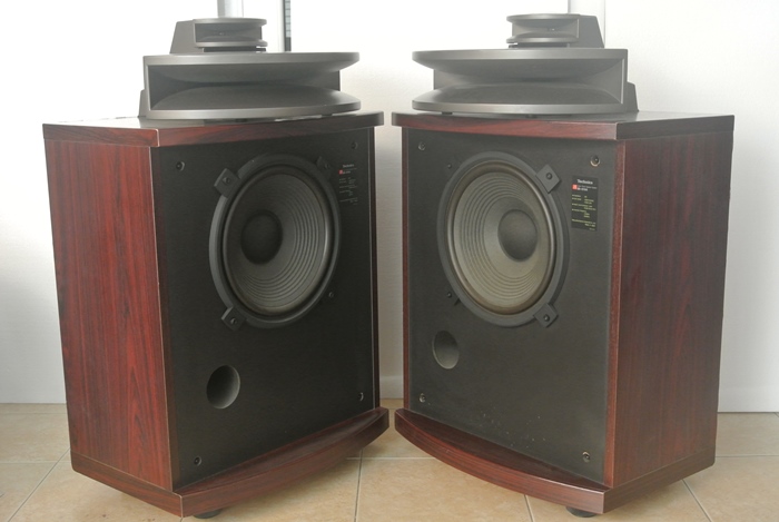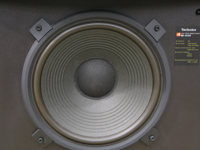 TECHNICS SB-E100 เป็นอีกหนึ่งสุดยอดลำโพงรุ่นใหญ่ Professional Series Studio Control Monitor ขนาดตั้งพื้นแบบ 3 ทาง 3-way, 3-speaker system Speakers with Control Tower ระดับตำนานโลก ที่ได้รับการยกย่องให้เป็นหนึ่งในลำโพง Double Horn ดีไซน์สวย เสียงดีที่สุดในโลก อันเนื่องมาจากมีการติดตั้งดอกลำโพงแบบ Horn มากถึง 2 ดอก โดยดอกลำโพงฮอร์นเสียงสูงเป็นแบบ 16 cm. Wide-directional Radial Horn Tweeter ผสมผสานกับดอกลำโพงฮอร์นเสียงกลางแบบ 45 cm. Wide-directional Radial Horn Mid-range ชื่อก้องโลก ก่อนจะสำทับความหนักแน่นจริงจัง ด้วยดอกลำโพงเสียงทุ้มแบบ Pure-pulp Cone Woofer ขนาดใหญ่ถึง 12 นิ้ว ที่มักจะนำไปติดตั้งอยู่ในลำโพงชื่อดังรุ่นใหญ่ ๆ ค่าตัวหลายแสนบาทเท่านั้น เพื่อช่วยให้สมรรถนะในการรองรับกำลังขับได้มากขึ้นกว่าเดิม และยังช่วยขยายแนวการกระจายเสียงให้แผ่กว้างขึ้นทั้งในแนวดิ่ง และแนวระนาบอีกด้วย ฉะนั้นมิติด้านเสียงต่ำ จึงเต็มไปด้วยความหนักแน่น จริงจัง กระหึ่ม กึกก้อง เบสกระชับ เก็บตัวเร็ว รองรับการกระแทกกระทั้นได้อย่างสุดยอดมาก ที่สำคัญยังมีการติดตั้งแผงปรับแต่งเสียง Sound Control Tower ที่ออกแบบมาอย่างโดดเด่นอลังการติดตั้งอยู่ด้านหลังของดอกลำโพง Double Horn ยึดติดกับด้านบนตู้ลำโพงอย่างสวยงาม พร้อมด้วยปุ่มปรับเสียงทุ้ม เสียงกลาง และเสียงสูงให้เลือกใช้ตามความชื่นชอบ สามารถรองรับพลังเสียงได้มากถึง 150 วัตต์ต่อข้าง ด้วยความไวต่อเสียง Sensitivity 95dB จึงสามารถนำไปใช้ร่วมกับเครื่องเสียงได้ทุกประเภท รวมทั้งแอมป์หลอดวัตต์ต่ำได้อย่างยอดเยี่ยม ตัวตู้ผลิตจากไม้โอ๊คธรรมชาติขนาดหนาเป็นพิเศษสี Oil Walnut ลวดลายสวยงามมาก หน้ากากปิดเฉพาะส่วนที่เป็นดอกลำโพงเสียงทุ้ม Woofer เท่านั้น แล้วเปิดโชว์ดอกลำโพงเสียงสูง Tweeter และเสียงกลาง Mid-range ที่เป็น Horn อันโดดเด่นให้เห็นอย่างชัดเจน ตัวตู้มีขนาดใหญ่ และหนักมากยกคนเดียวไม่ไหว กว้าง 53 สูง 84 ลึก 42 ซม. น้ำหนักประมาณ 30 กก.ต่อตู้