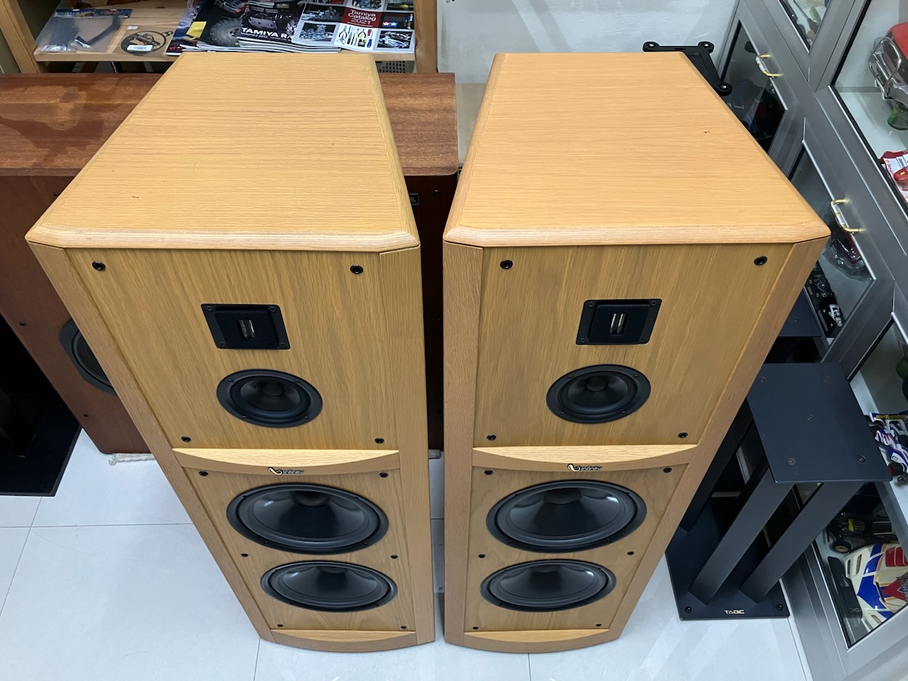 -ตู้ทรงสี่เหลี่ยมคางหมู ลดการสะท้อนของอากาศในตู้ลำโพง และมีคาดโครงเสริมความแข็งแรงที่ผนังตู้