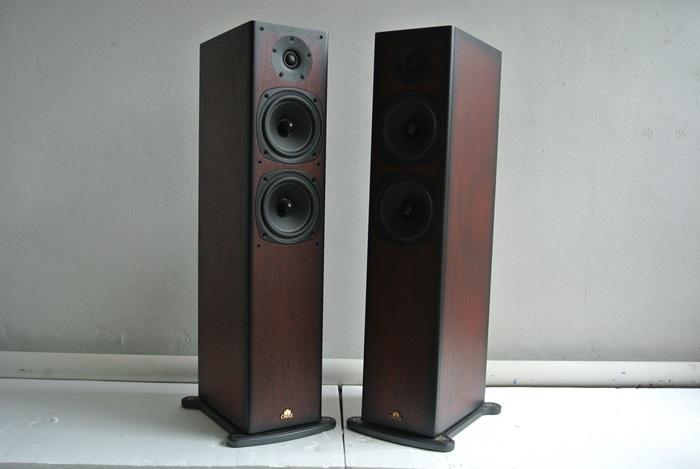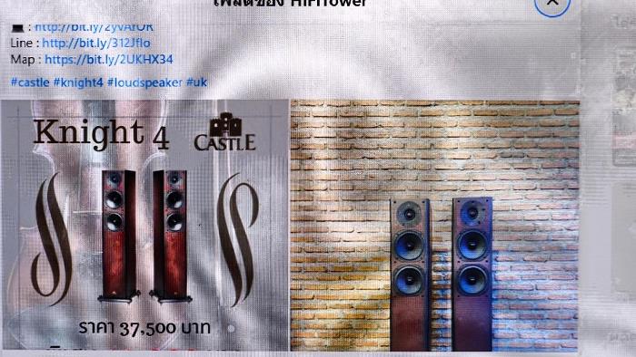 2. CASTLE Knight 4 เป็นลำโพงขนาดตั้งพื้นแบบ 3 ทาง Three-way, floor standing, reflex-loaded box, transmission line loudspeaker ระดับ Monitor ที่โดดเด่นมากด้วยการติดตั้งดอกลำโพงเสียงสูงแบบ Modulus polyamide micro-fibre soft dome tweeter ขนาด 1 นิ้ว ผสมผสานกับดอกลำโพงเสียงกลางสะดือจุ่นอันเลื่องชื่อระดับโลก แบบ Fibre cone bass/midrange ขนาด 5.5 นิ้ว ก่อนจะสำทับความหนักแน่นจริงจังด้วยดอกลำโพงเสียงทุ้มสะดือจุ่นอันเลื่องชื่อระดับโลก แบบ Fibre cone bass/midrange ขนาด 5.5 นิ้วเพิ่มเข้าไปอีก 1 ดอก สามารถรองรับพลังเสียงได้สูงสุดถึง 150 วัตต์ต่อข้าง ด้วยความไวต่อเสียง Sensitivity ที่ 90dB จึงสามารถเล่นร่วมกับเครื่องเสียงได้ทุกประเภท รวมทั้งแอมป์หลอดได้อย่างยอดเยี่ยม ตัวตู้ดีไซน์ Two Tone สี Mahogany ผลสมกับสีดำได้อย่างสวยงามแปลกตา กว้าง 17 สูง 84 ลึก 27 ซม. น้ำหนักประมาณ 13 กก. ต่อตู้ มาพร้อมฐานที่ออกแบบได้อย่างสวยงาม มี Spike ให้อย่างครบครัน